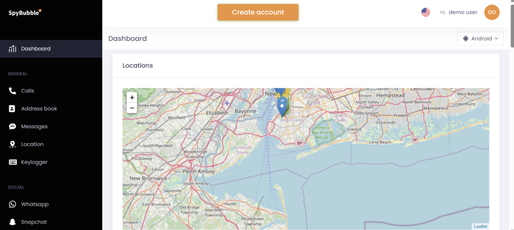 SpyBubble is a phone monitoring application that runs silently on a target device and sends captured data to a secure personal dashboard in real time. It works on both Android and iOS without requiring rooting or jailbreaking, and leaves no visible icon or trace on the monitored device.